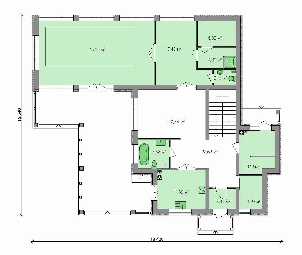 Проект содержит три раздела – Архитектурный, Конструктивный и Инженерный (Водоснабжение, Отопление, Вентиляция, Канализация, Электроснабжение) + Пояснительная записка